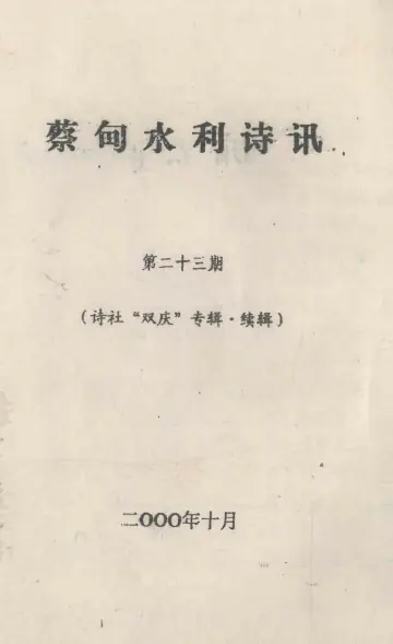 2000年版蔡甸水利诗讯 第23期 诗社“双庆”专辑续辑.pdf电子版