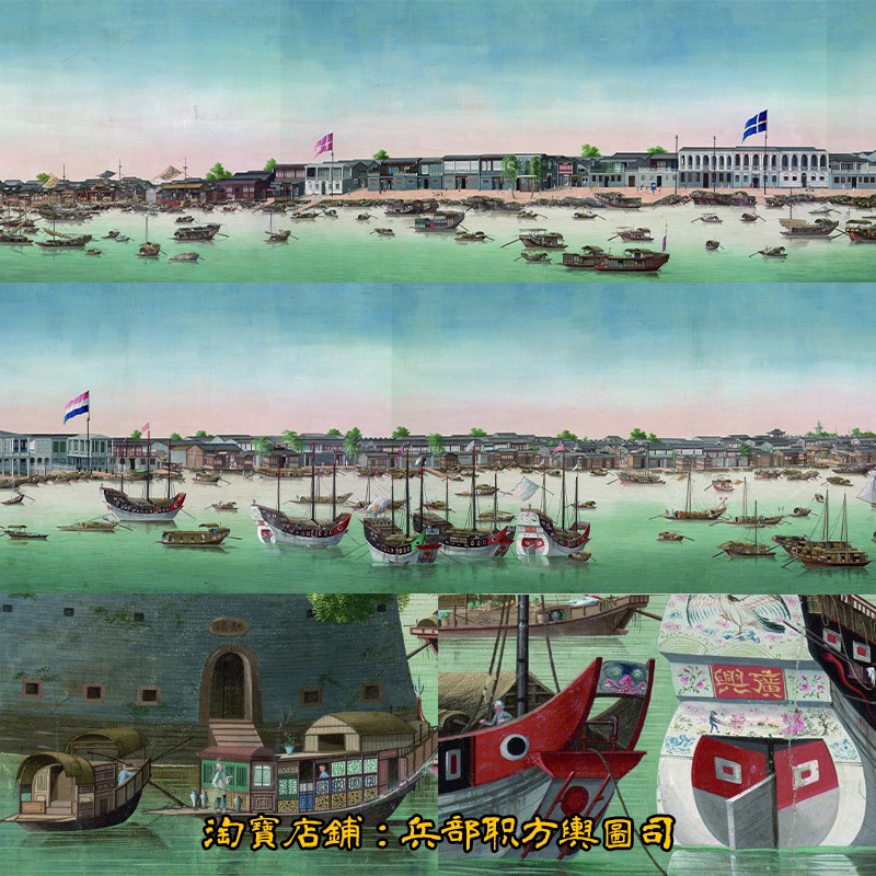 清代广州城珠江滩景图高清彩绘绢本长卷JPG电子图片1张(乾隆35年
