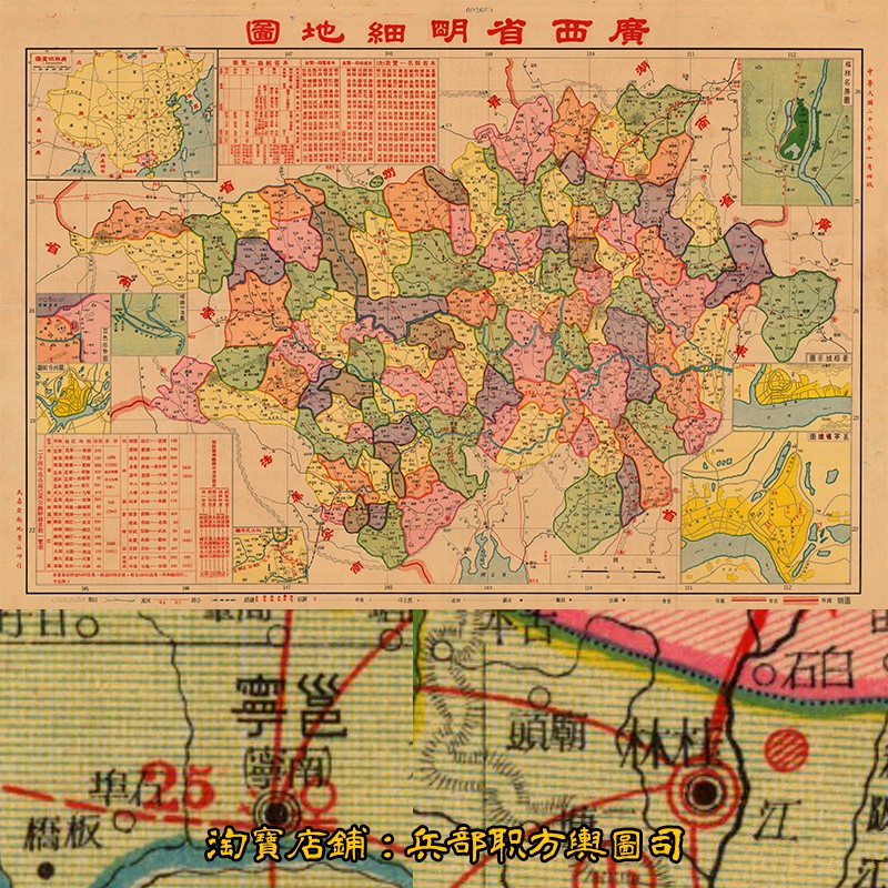 抗战时期1937年民国广西省明细老地图影视道具电子版图片素材