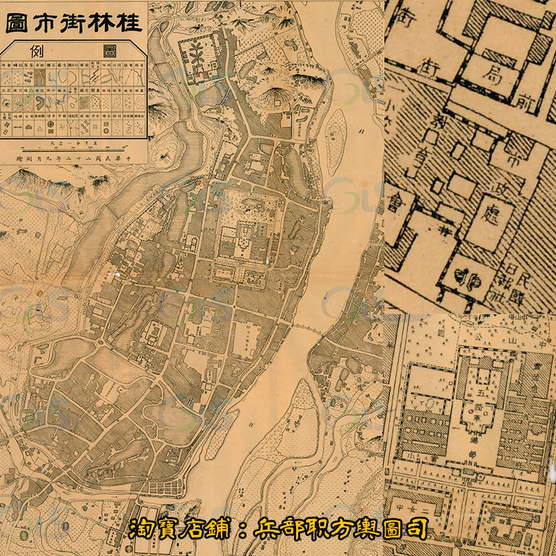 1933年民国时期桂林市街图 电子版JPG图片老地图道具素材 高清1张