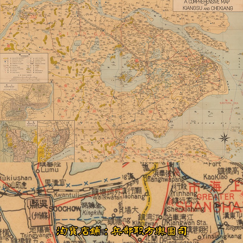 日绘抗战时期江苏浙江两省水陆空公路铁路交通航线道路详细示意图