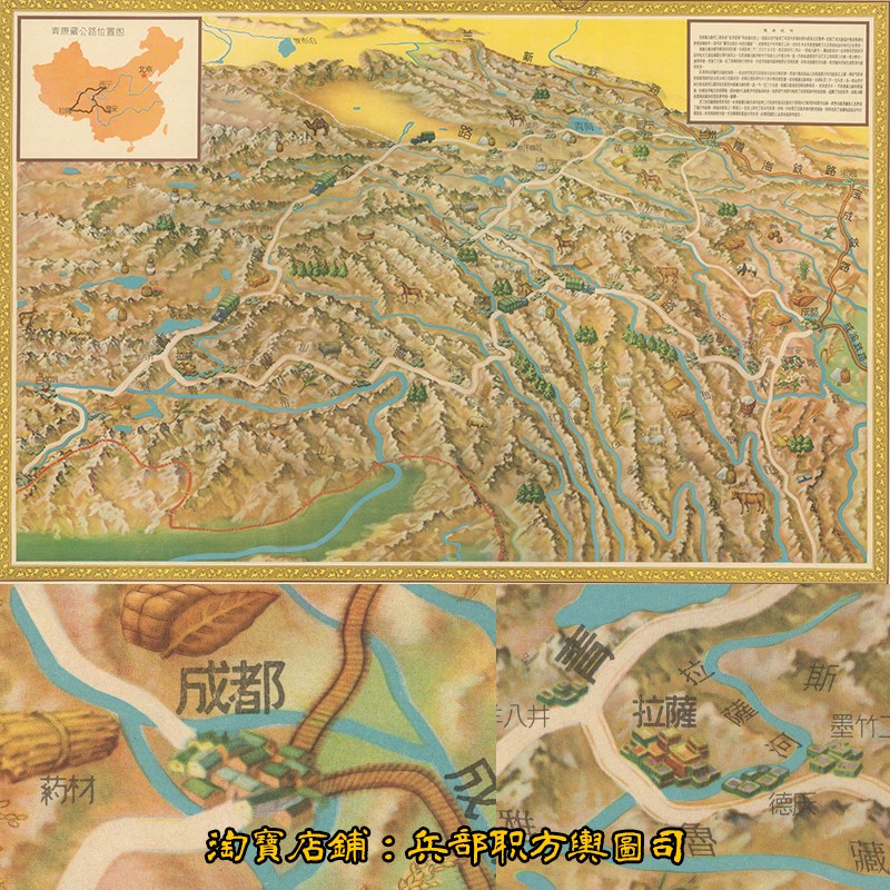 【舆图】漫画风格1955年青康藏公路鸟瞰风景图1张高清JPG电子图