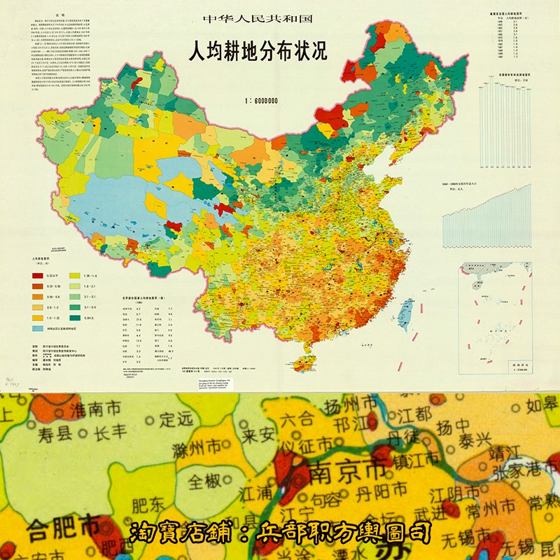 【舆图司】90年代中国人均耕地分布状况图JPG电子图片(1993年)