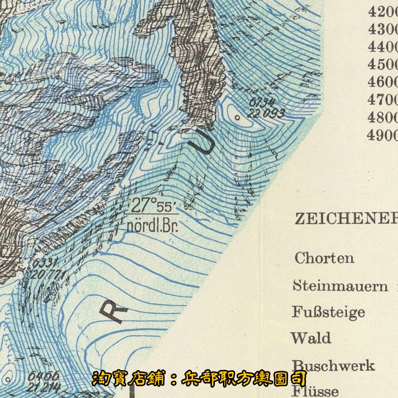 50年代珠穆朗玛峰等高线地形图JPG高清电子图片1张(英1957年)