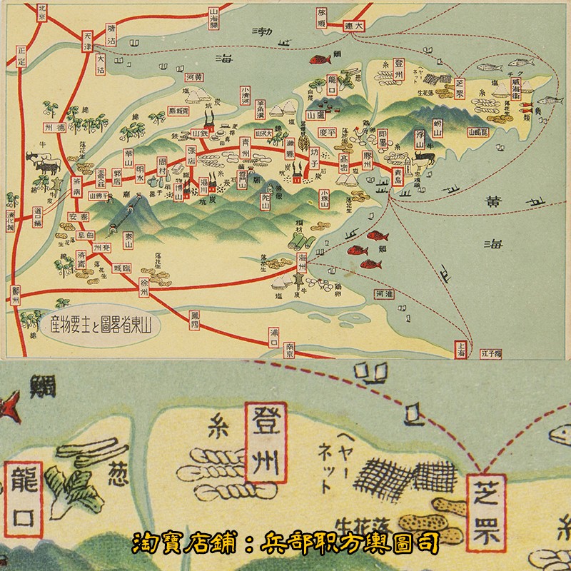【舆图】日占时期山东省主要物产资源分部图 高清JPG电子图片1张