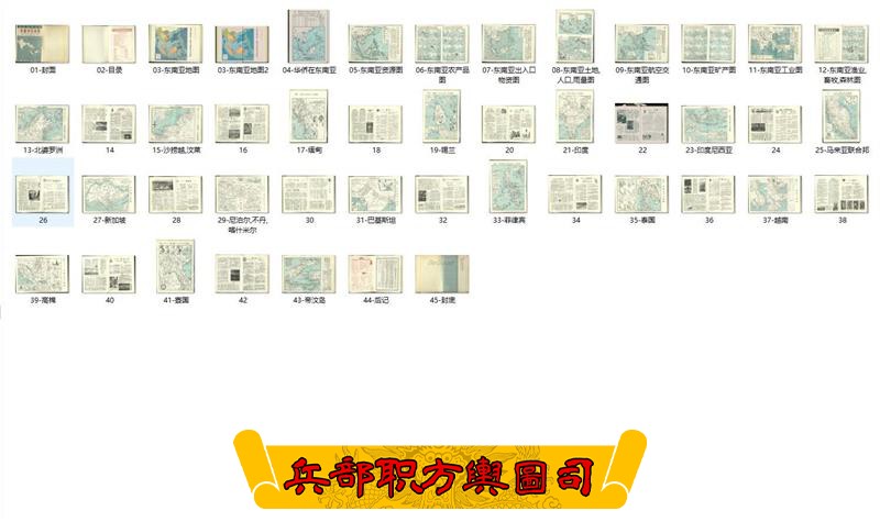 【舆图】东南亚地图集1955年天气矿产林业渔业交通等45张电子素材