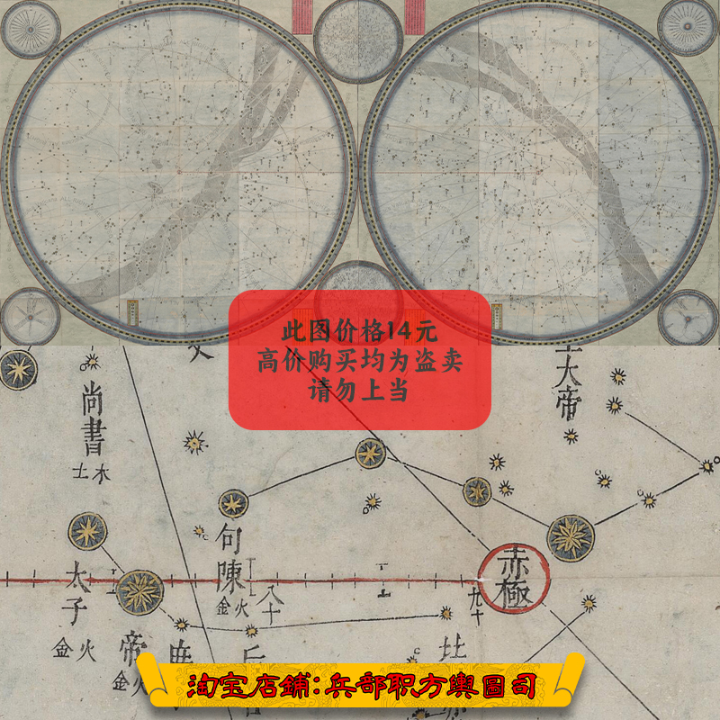 徐光启彩绘赤道南北两总星图天文星象高清大图 电子版 (崇祯7年)