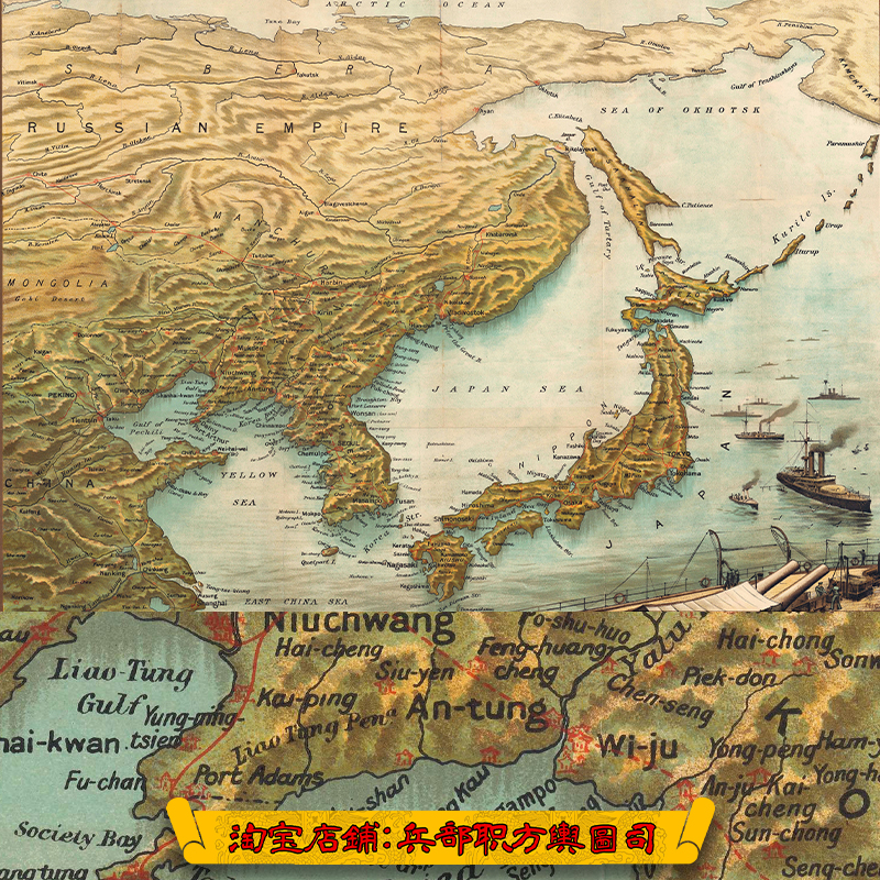 【舆图】1904年一战时期东亚东北地区朝鲜日本远东地区鸟瞰图