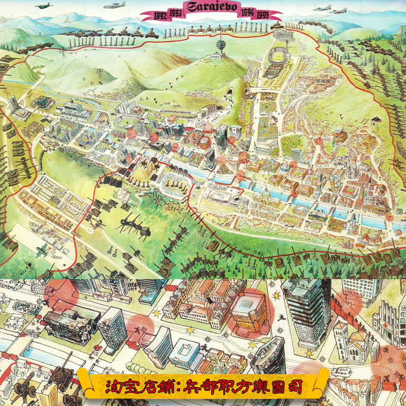 【舆图】波斯尼亚战争萨拉热窝围城战役鸟瞰示意图 JPG图片素材