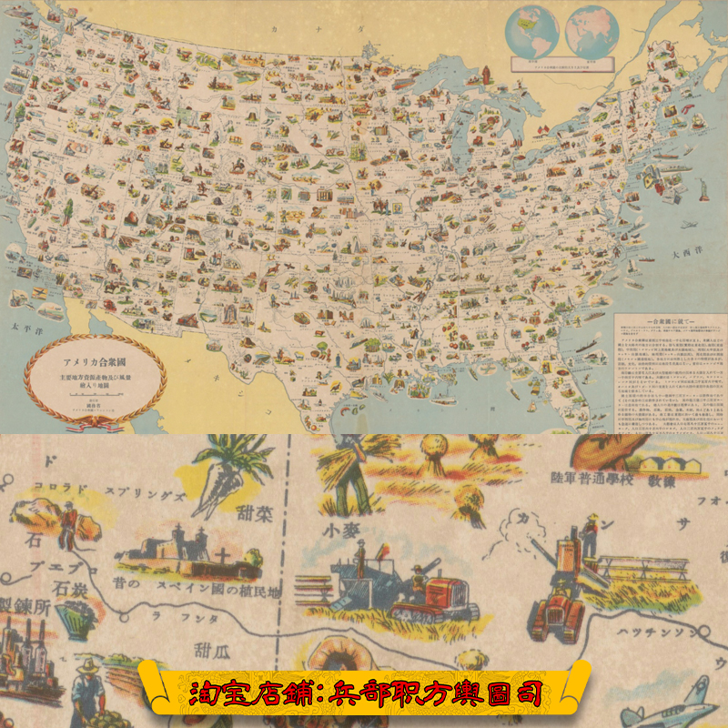 【舆图】日绘60年代美国工业农业资源分布图1幅JPG图片