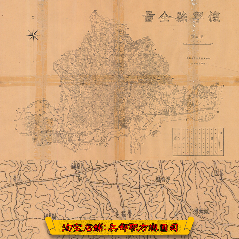 解放前1944年安徽省安庆市怀宁县老地图1幅高清JPG电子图片