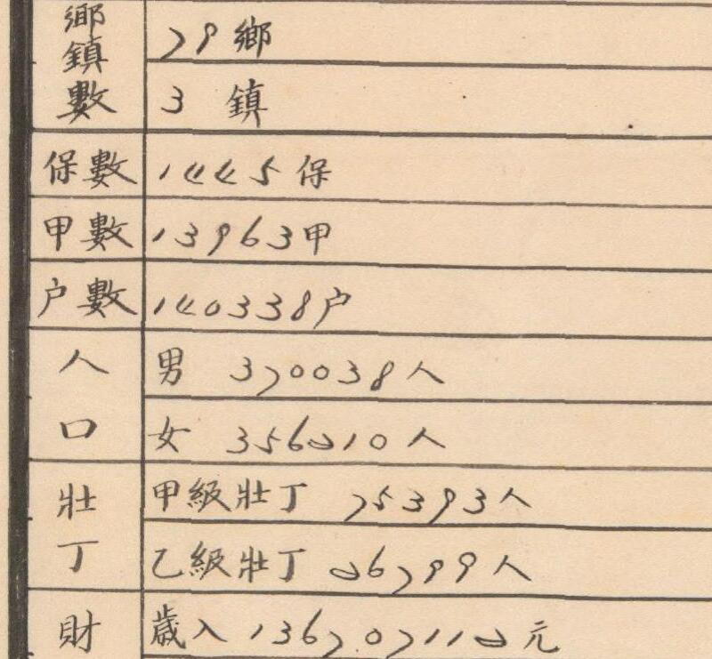 此《广东省潮阳县图》为手绘图,地图绘有示意山脉,有区界及乡界,注有乡公所在地之地名。人口、乡镇保甲、教育、财政、警卫等信息。