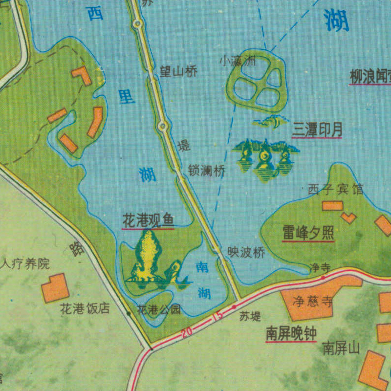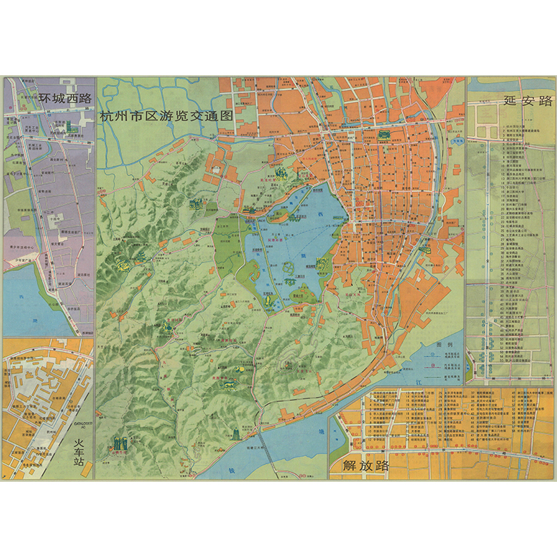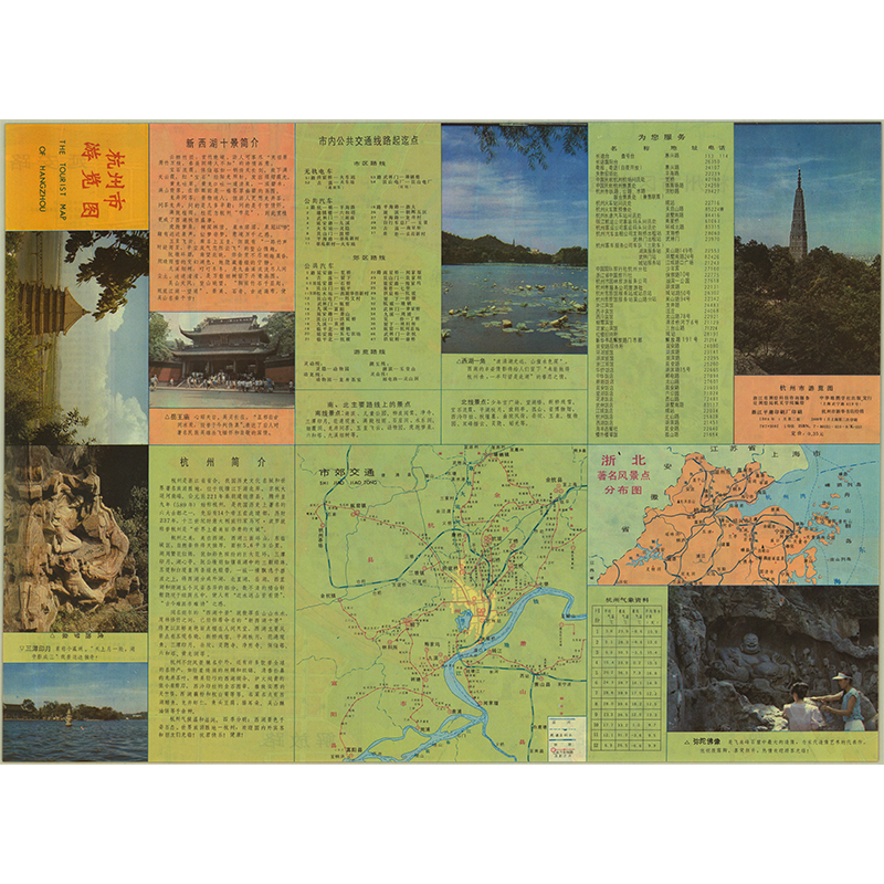 【舆图】1988年杭州市区游览交通图 80年代杭州老地图 电子图片