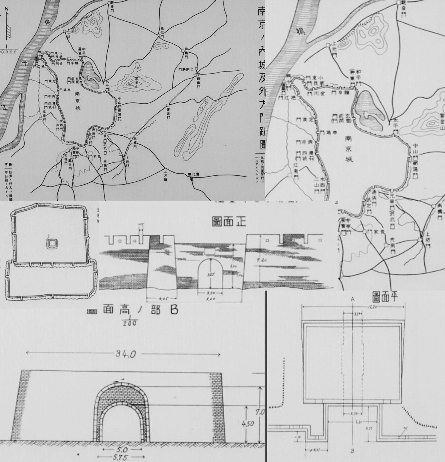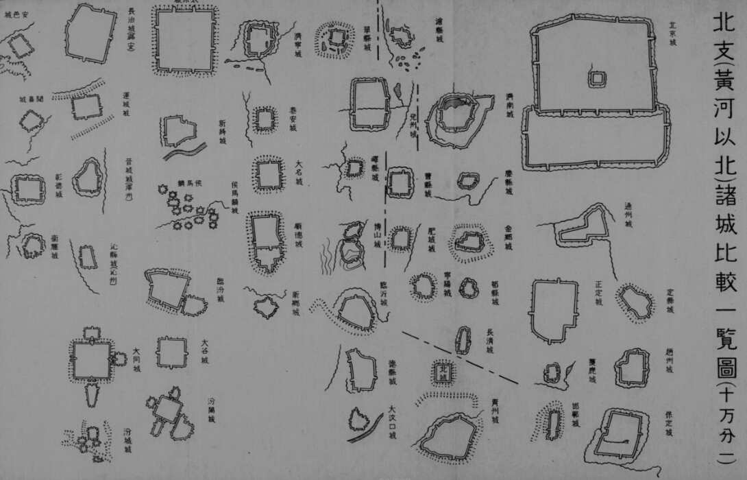 日本军部编中国主要城镇城墙城门布局地图(昭和15年古本)