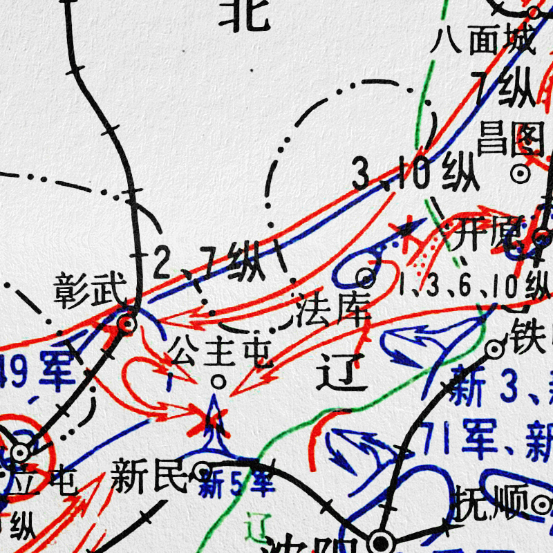 东北我军抗击国民党军进攻经过要图 (1946年2月一6月7日)