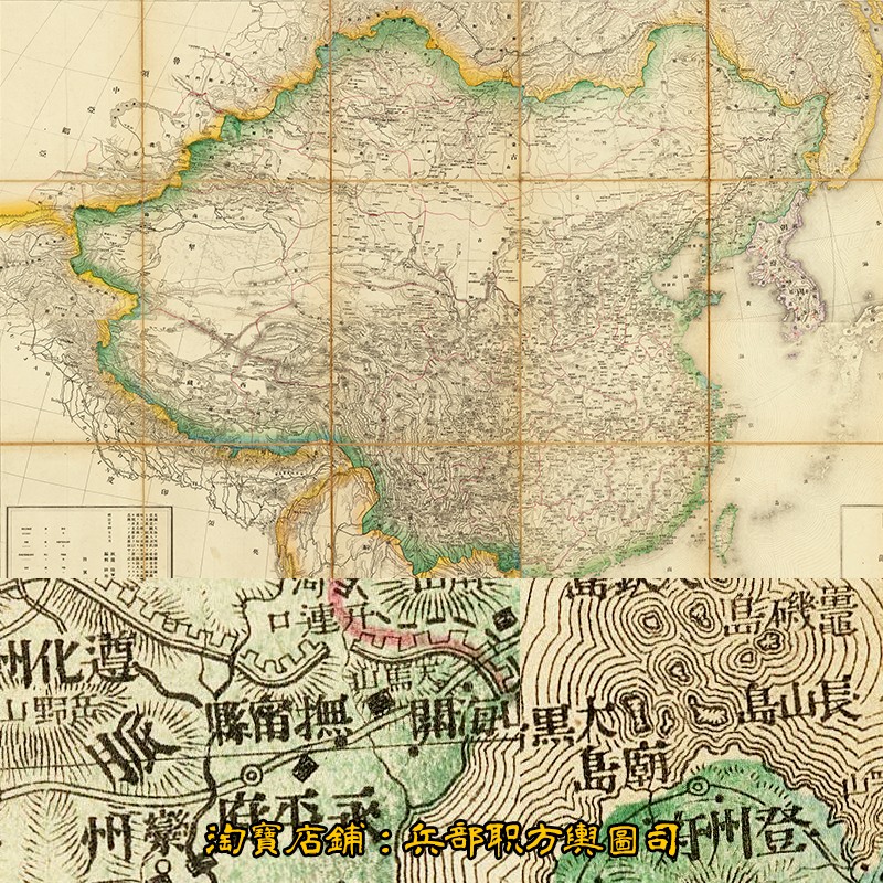 日绘清末中日甲午战争前 大清政区交通全图(明治24年古本)