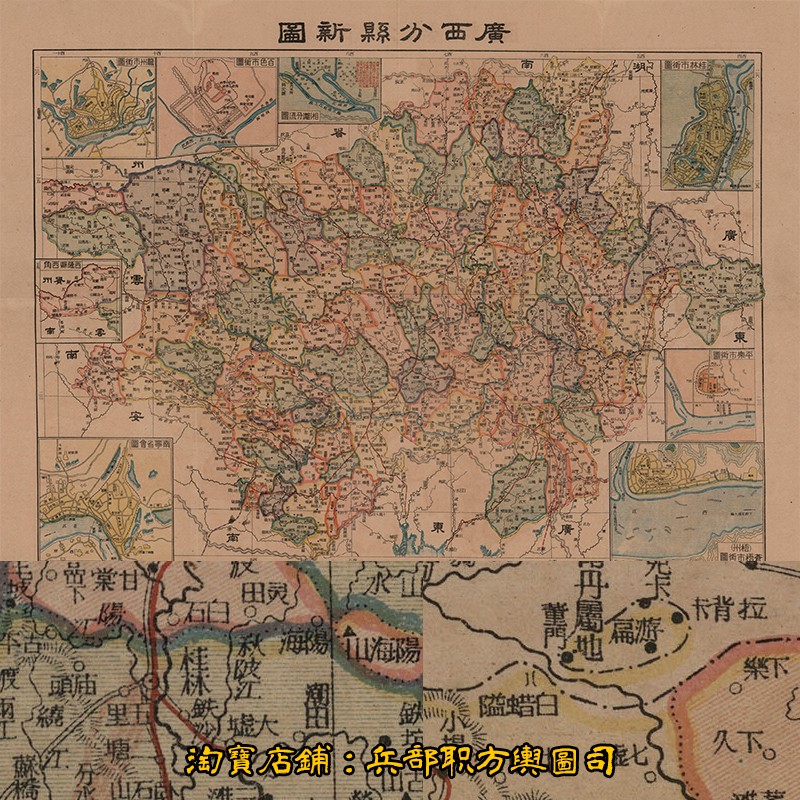 1930年广西省分县新图民国时期老地图 电子版JPG图片道具素材
