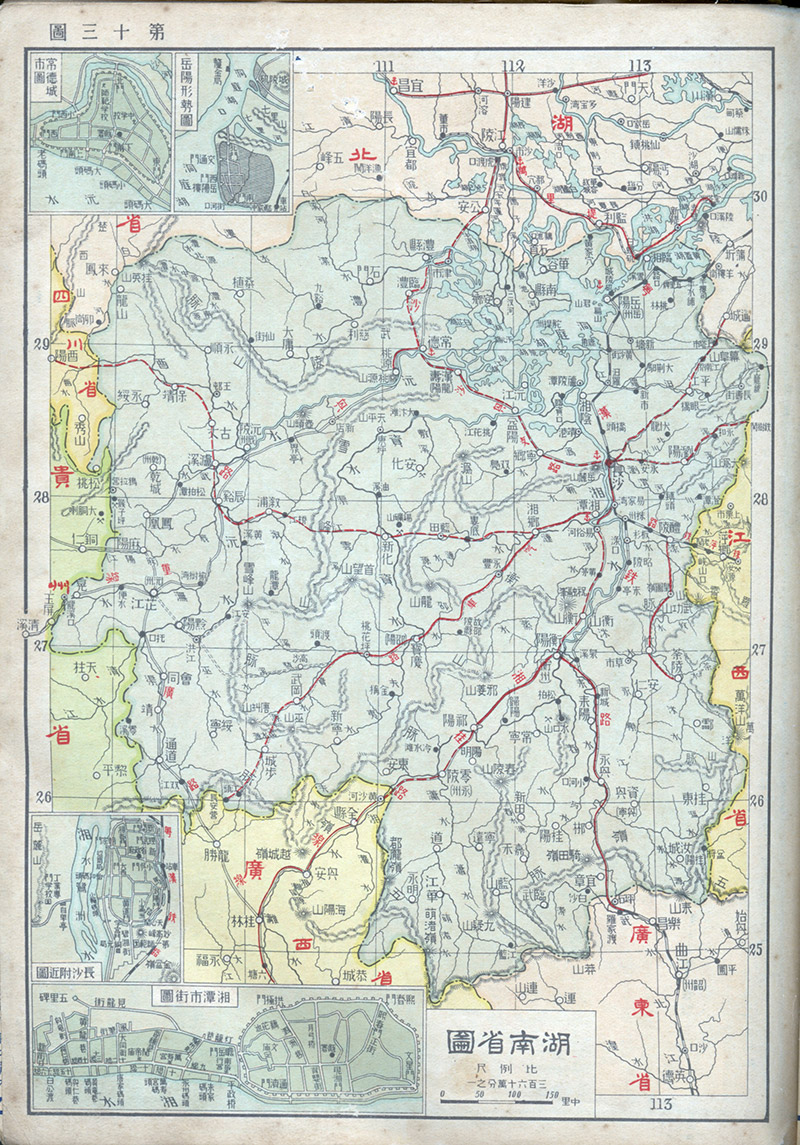 此《zui新中华形势一览图》封面为蔡元培先生题名。本书十六开,共有近四十页,左开本,前后有封面(皆缺失),32张彩图及众多附图。充分显示出三十年代的全国以及各省地方政治经济文化交通,以及中国所处弱国环境。附台湾等失地、中国水系、山脉、铁路、不平等条约一览表、租界、贸易表和建国方略题表(末页)等。