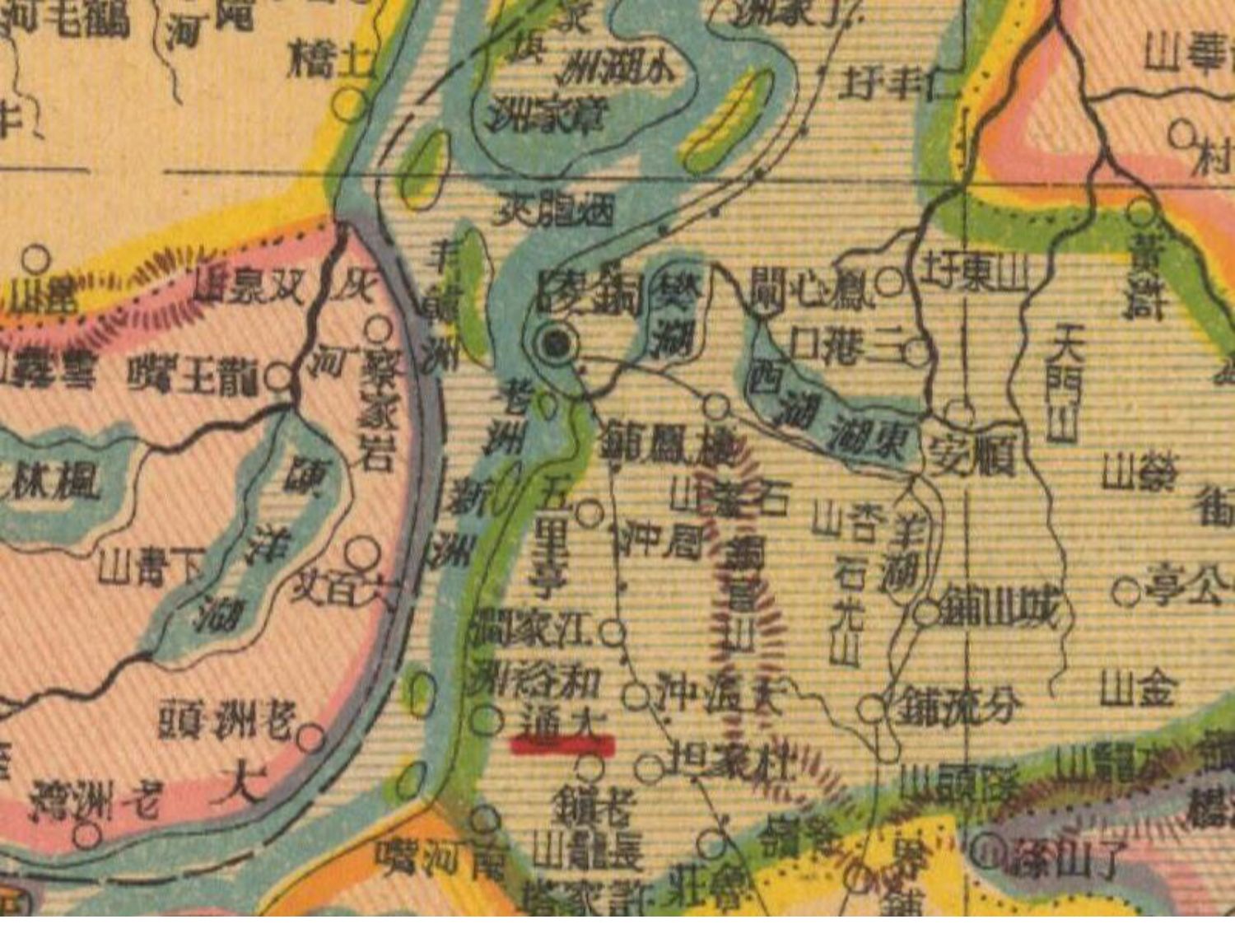 此《安徽明细地图》应该为1927出版(待确认,有可能为1934-1938年),武昌亚新地学社印行。该图比例尺1∶90万,为多色彩图。采用格林威治天文台为首子午线起算之经纬坐标控制网,经度为东经116度~119度,纬度为北纬29度~34度。