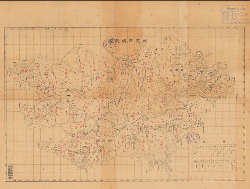此《罗定县境总图》为民国时期发行,可能的年代为1941年。此《罗定县境总图》绘制非常详细,全县所有村庄均有绘制,山石、村庄、界堡、庙宇均有体现,开幅大,素面2色图。