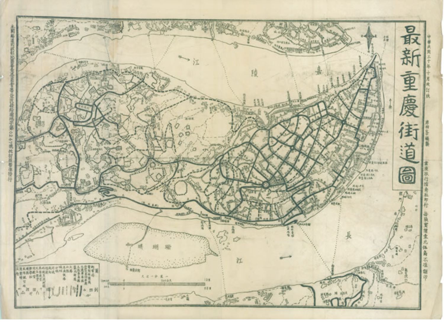 1941年《重庆旅行指南社版》地图JPG超高清版,文件大小:2.70M,地图大小:4000*2883像素