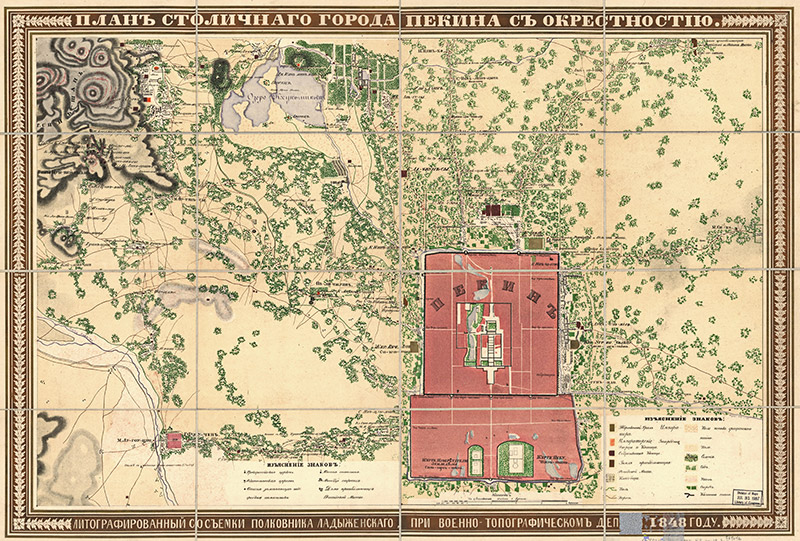 1848年北京城及郊区图(俄文版)JPG高清版,地图文件大小:9.47M,地图大小:7388X5000像素