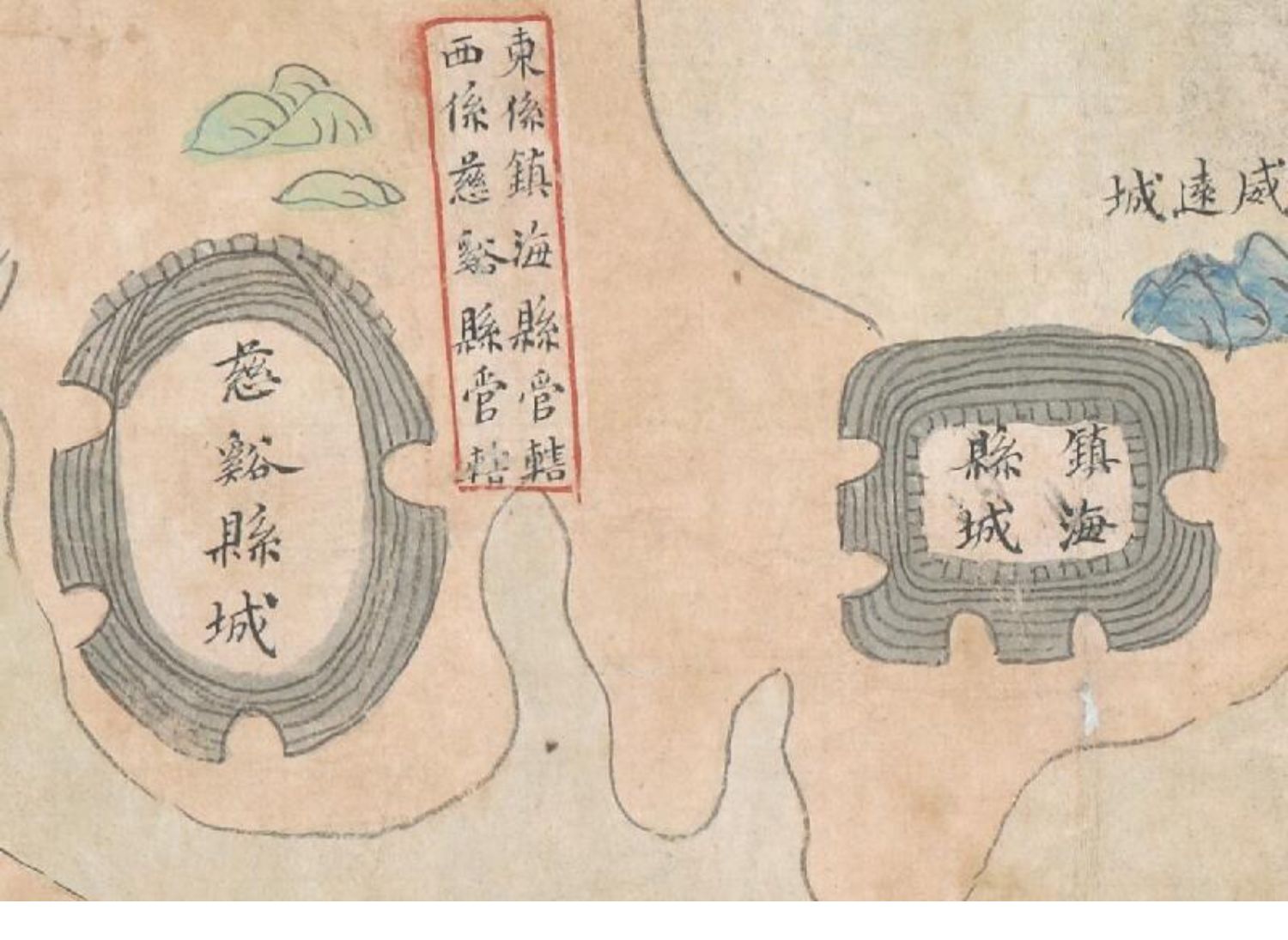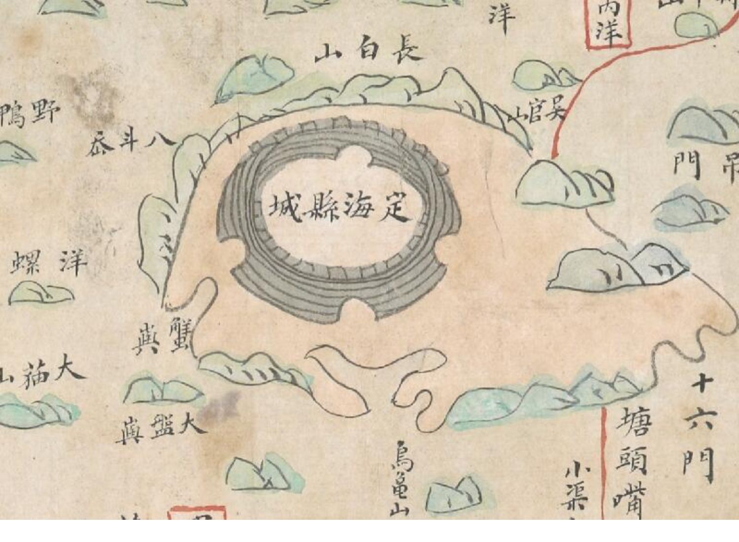 宁波府原领县五(鄞县、慈溪、奉化、定海、象山);康熙25 年(1686)五月奉上谕“山名為舟,则动而不静,因易名定海山颁赐。27 年(1688)建县治,赐名定海县,而以旧定海为镇海县”。道光21 年(1841),定海县改置直隶厅,故《一统志》谓“领县六”,则是将改厅前定海县属宁波府一併叙述。