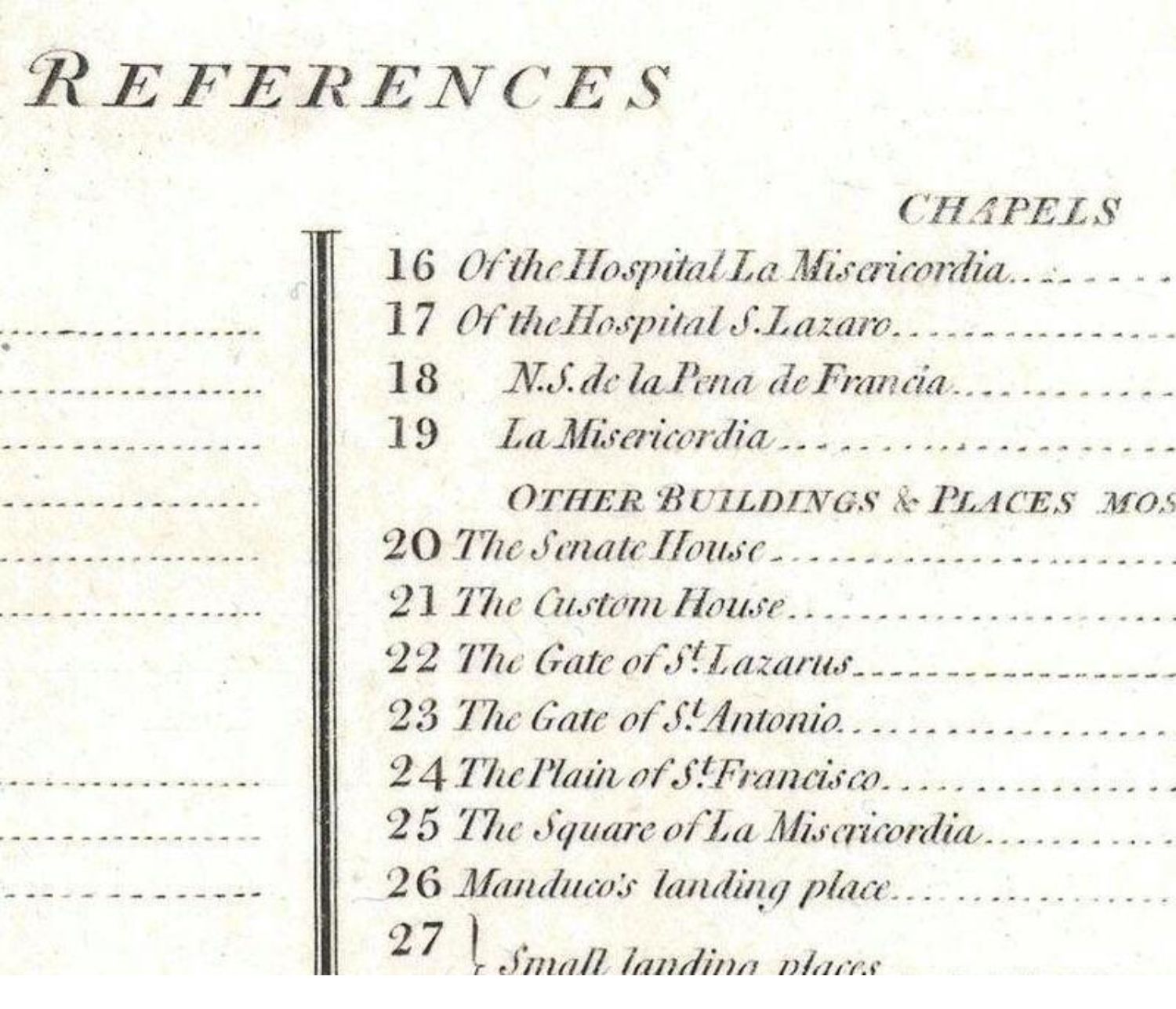 《澳门城市与港口规划图》画出了澳门及附近地形图,并标注出37个澳门当时的主要建筑名称。
