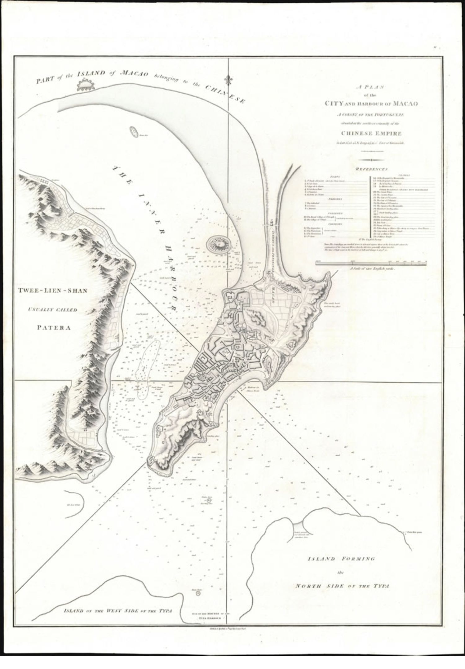 此《澳门城市与港口规划图》为英文版地图,发布于1796年,英文名称《 A PLAN of the CITY AND HARBOUR OF MACAO》。