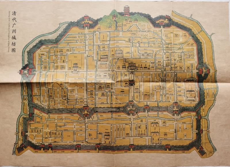 《清代广州城坊图》绘制于100年前,本贴共享的图为现代复制图照片版,目前没有收集到其它更好的版本,待收集到了在行替换。