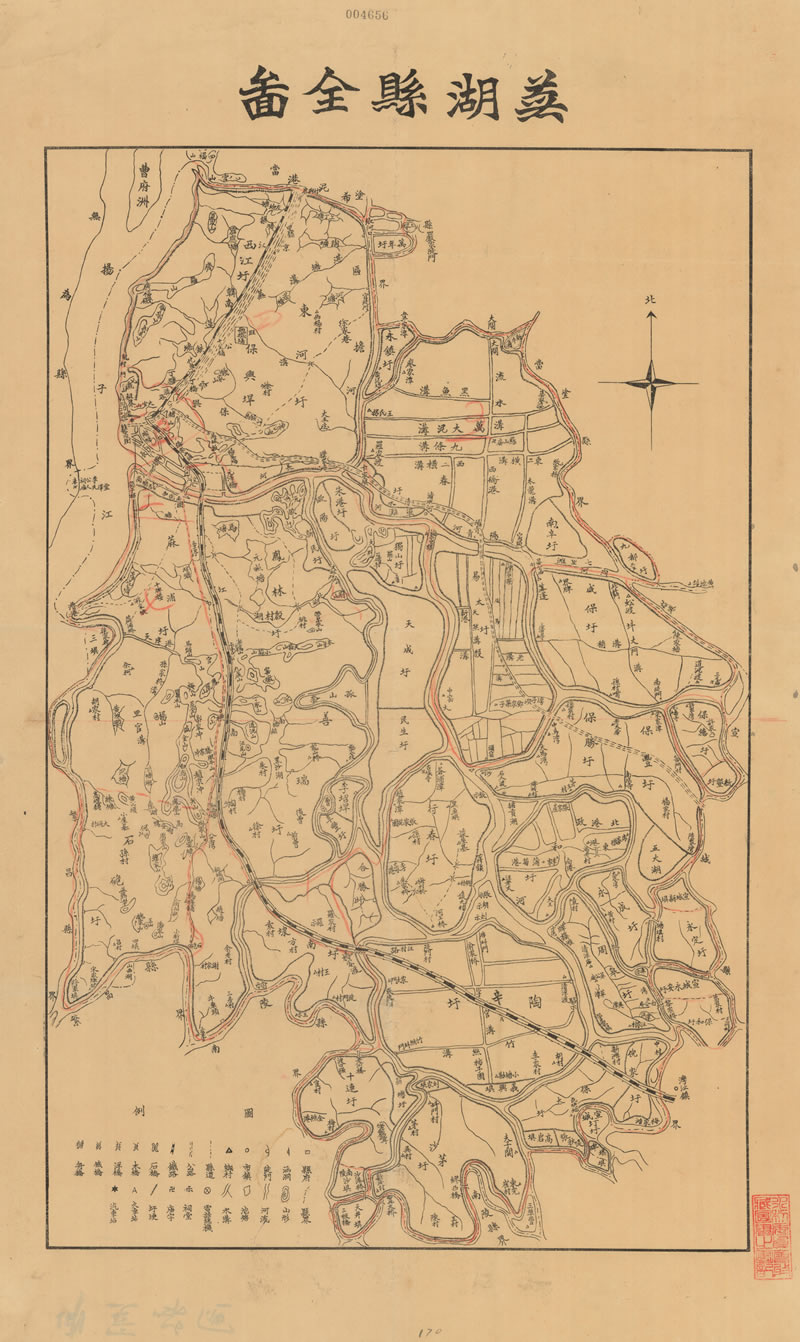 图右下有“水利委员会收藏图书之图印”盖章。关于本地图的具体年代,大家可以根据图中内容来确定