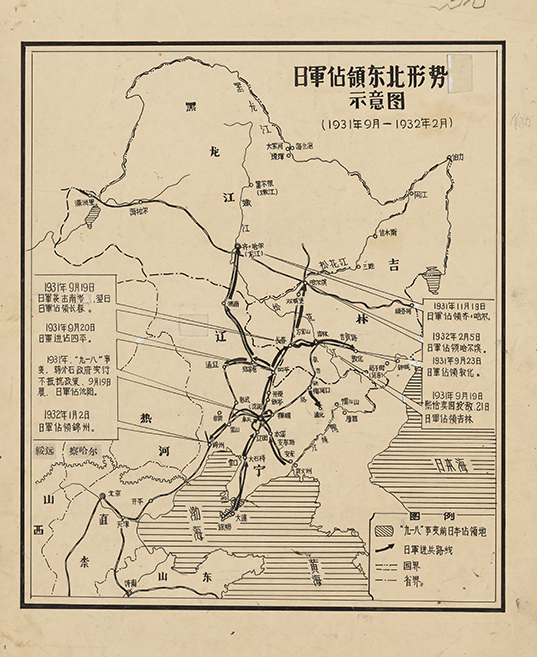 【舆图】1931年9月-1932年2月 918事变日军占领东北形势示意图