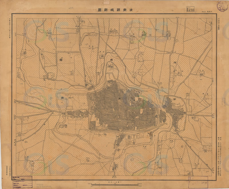 此《汝南县城厢图》为民国36年(1947年)8月发行的河南驻马店汝南县城详细地图,由当时的河南省&政&府地政局编绘的河南驻马店市汝南县城市街及周边区域地图。比例尺: 1/10000,原件尺寸: 58.4 * 48.1cm,现藏中研院。