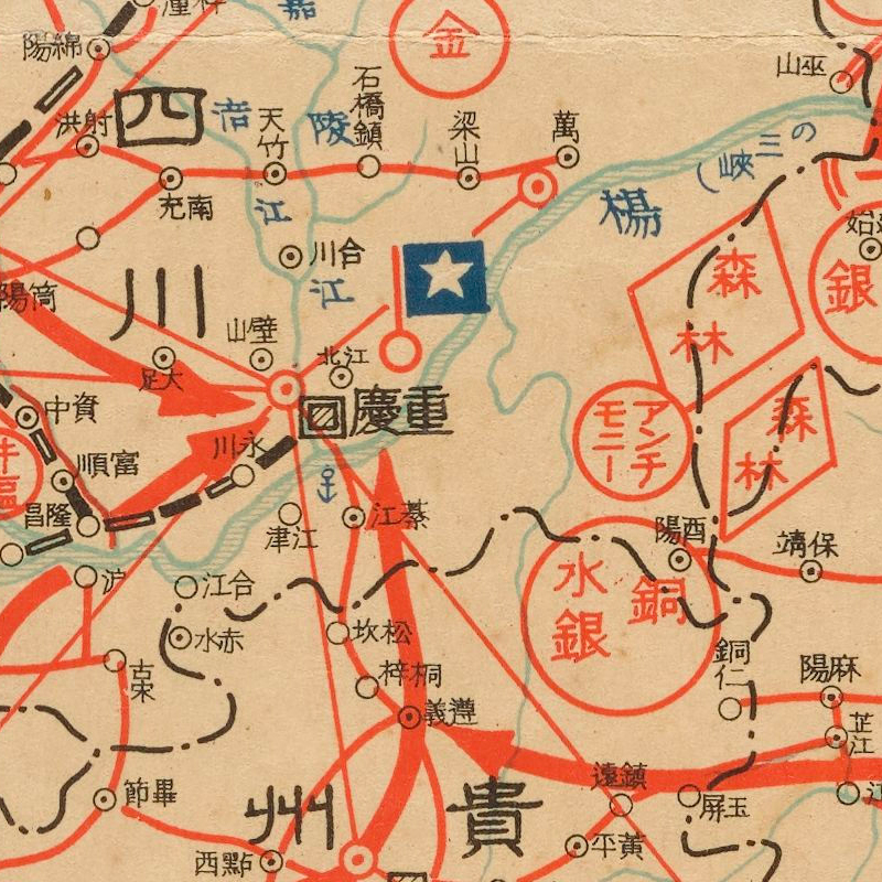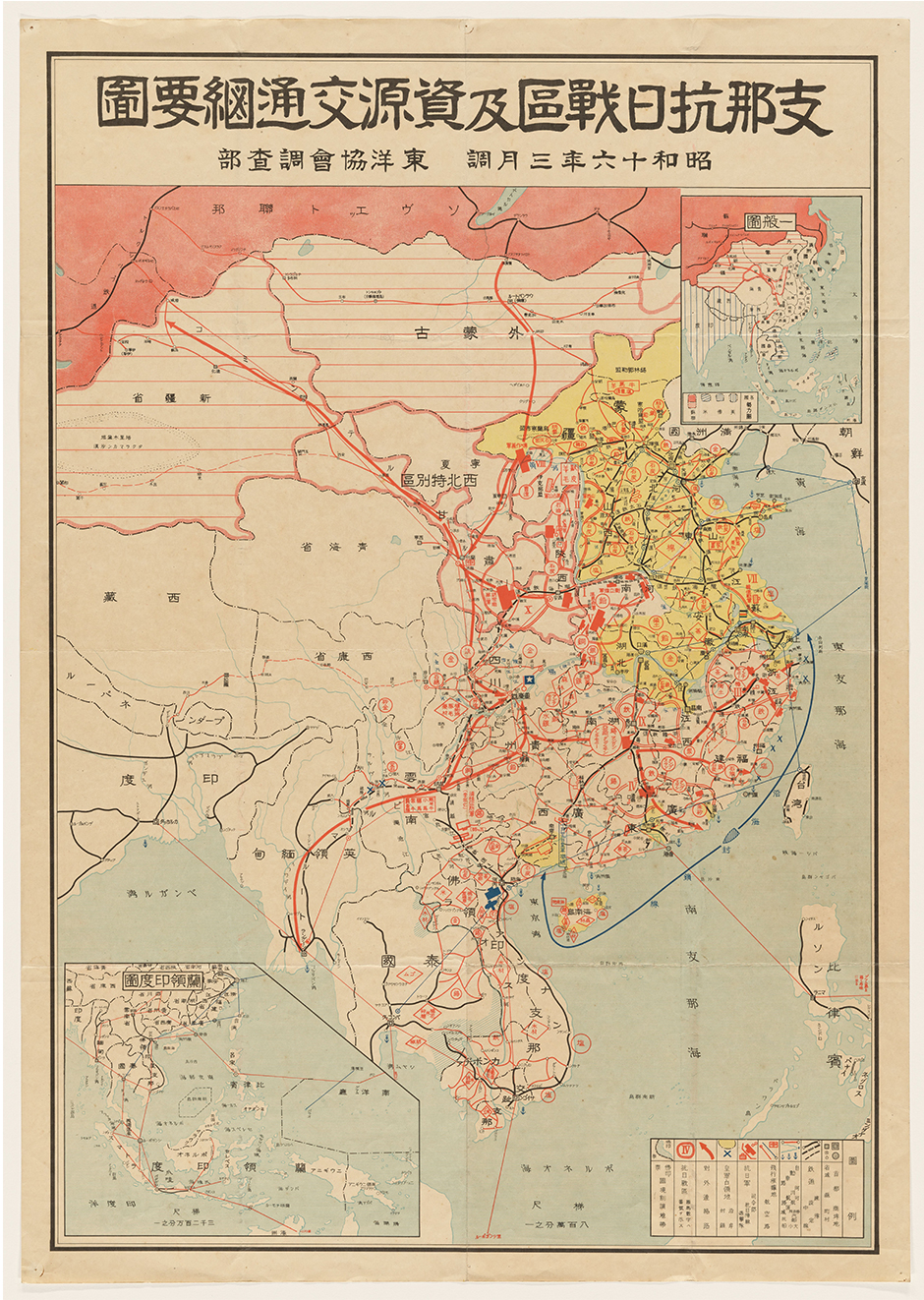 【舆图】1941年抗日战区及资源交通网要图 我军部署物产资源图