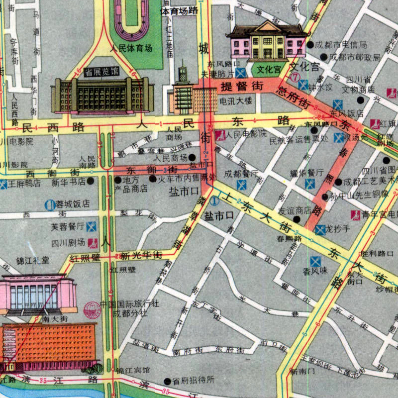 【舆图】1987年成都导游图 80年代成都老地图 电子图片