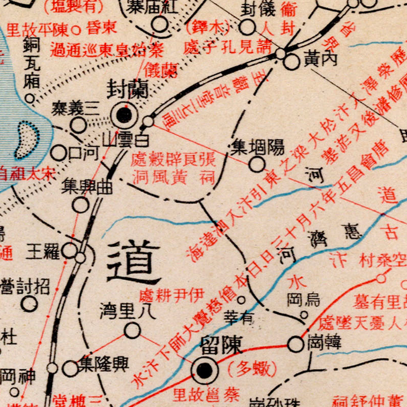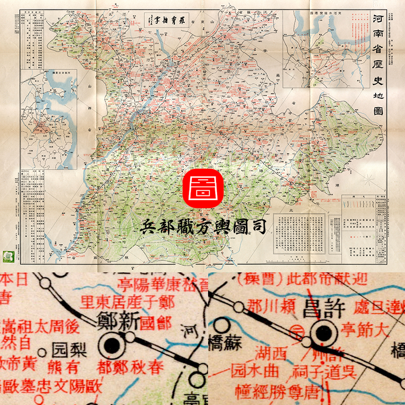 【舆图】日本绘河南历史遗迹沿革名胜古迹高清全图(1931年绘制)