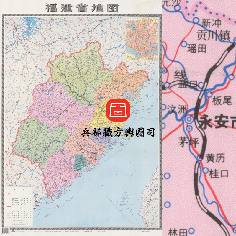 【舆图】福建省明细地图 90年代挂图 (1998年)