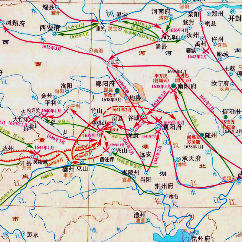 张献忠起义军从荥阳大会到襄阳之战时期作战图