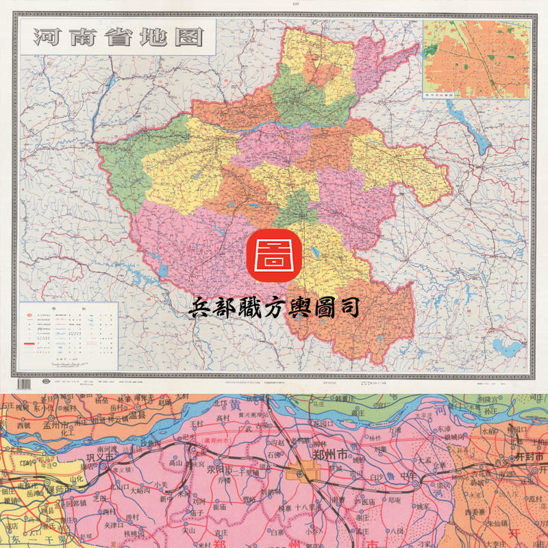 【舆图】河南省明细地图 90年代挂图 (1998年)