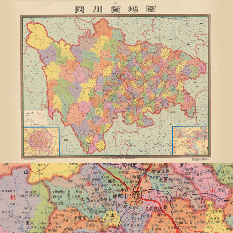 【舆图】四川明细地图 90年代挂图 (1995年)