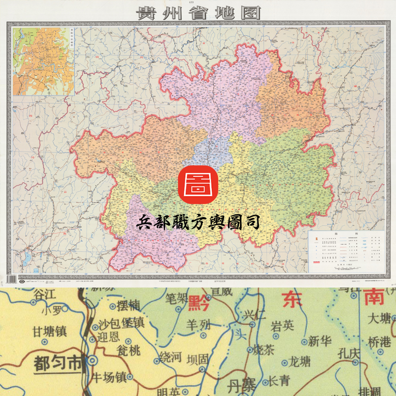 【舆图】贵州省明细地图 90年代挂图 (1998年)