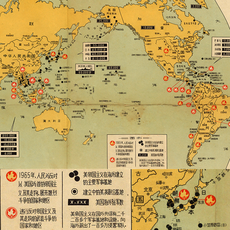 1966年文革期间全世界反帝国主义斗争形势图美英基地示意图