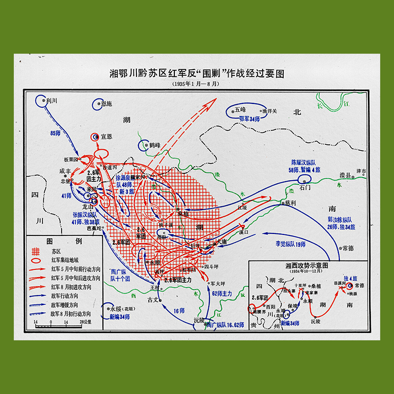 土地革命时期 湘鄂川黔苏区红军反围剿经过要图 (1935年1一8月)