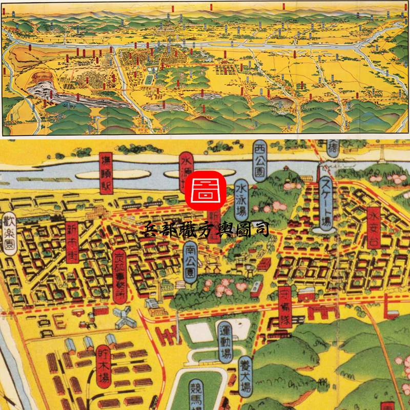 【舆图】日绘战时辽宁抚顺鸟瞰图 高清JPG素材