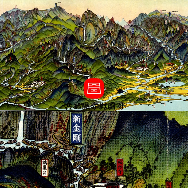 【舆图司】1929年朝鲜名胜金刚山全貌鸟瞰高清风景图装饰画素材图