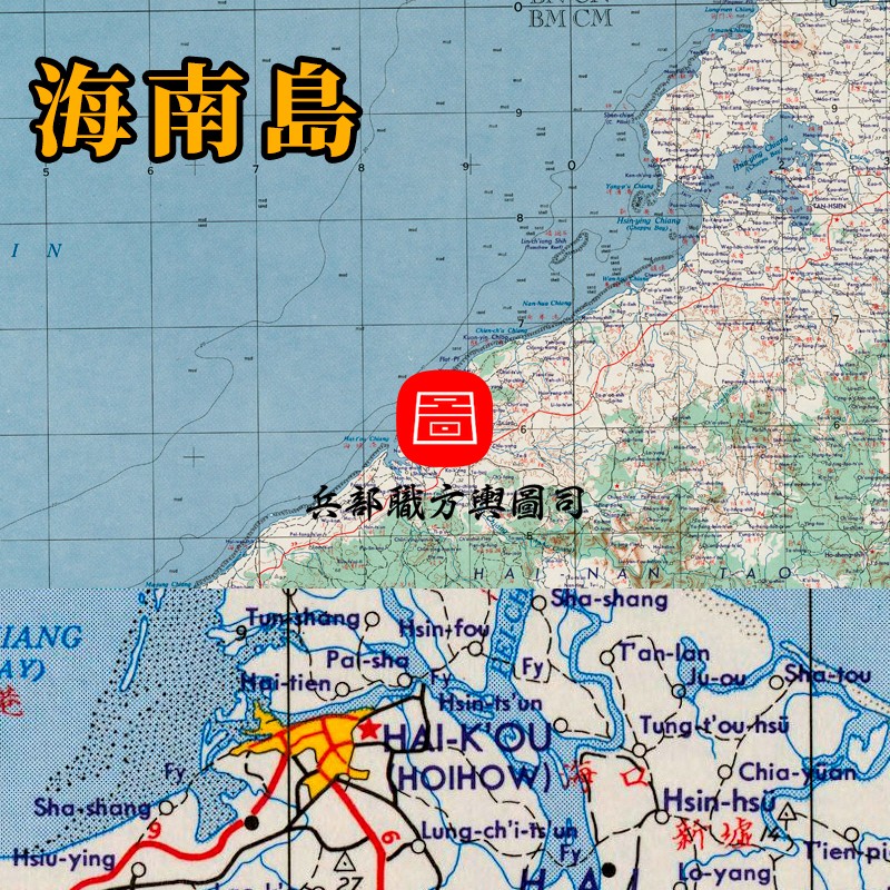 【舆图司】美绘海南岛局部地理地形交通高清图5张(1956)