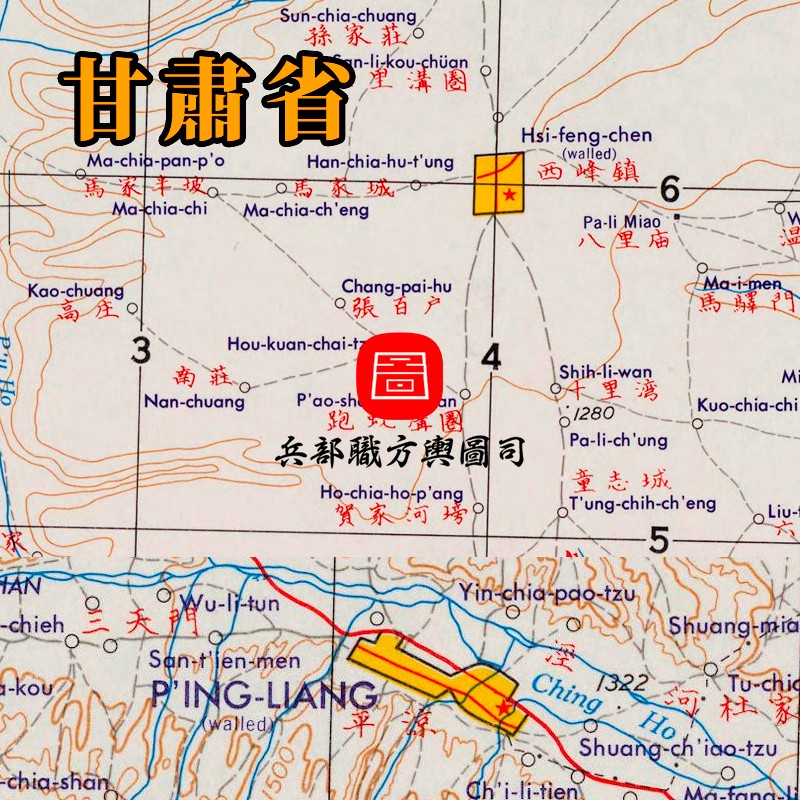 【舆图司】美绘甘肃局部地理地形交通高清图5张(50-60年代)