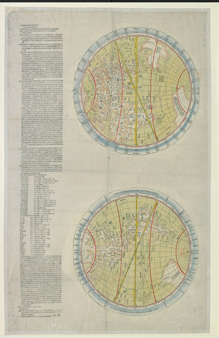 舆图 1794年大清统属职贡万国经纬地球式方舆古地图乾隆五十九年