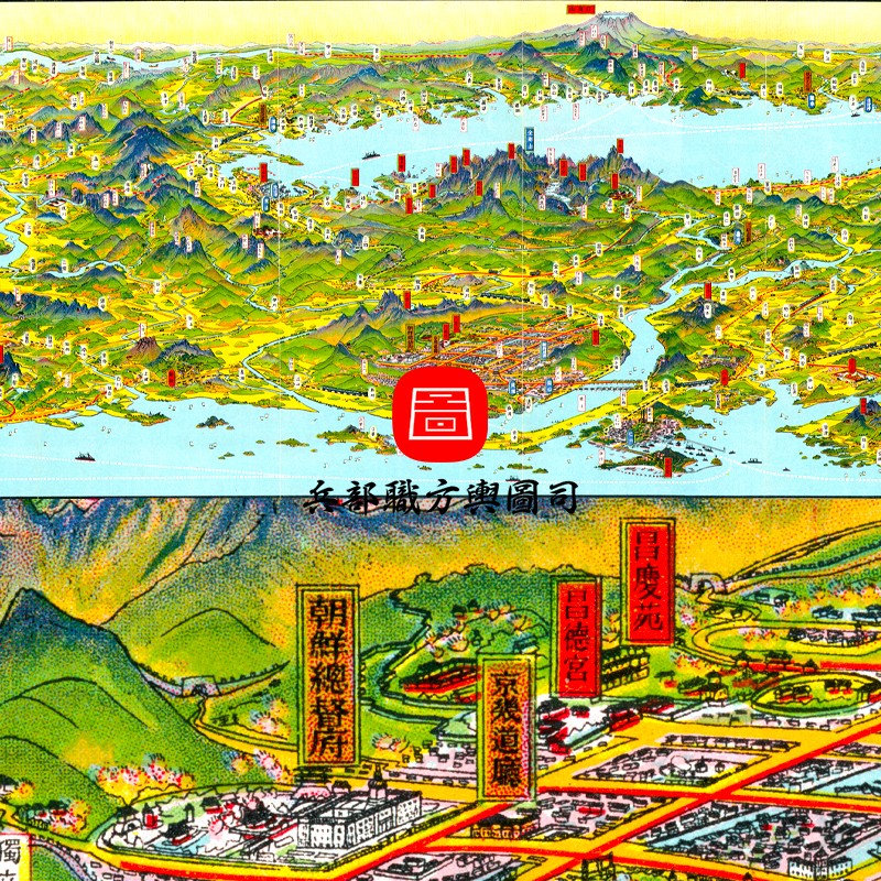 【舆图】1929年朝鲜半岛高清鸟瞰图装饰画素材tif