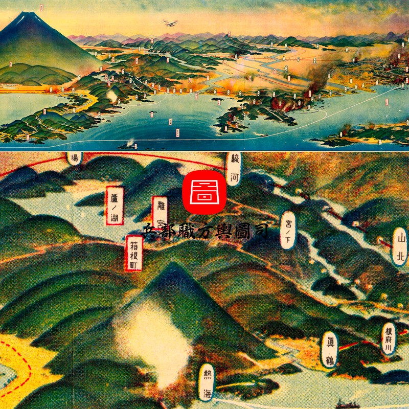 【舆图司】关东大地震日本震灾火灾区域全景鸟瞰图(1924年本)
